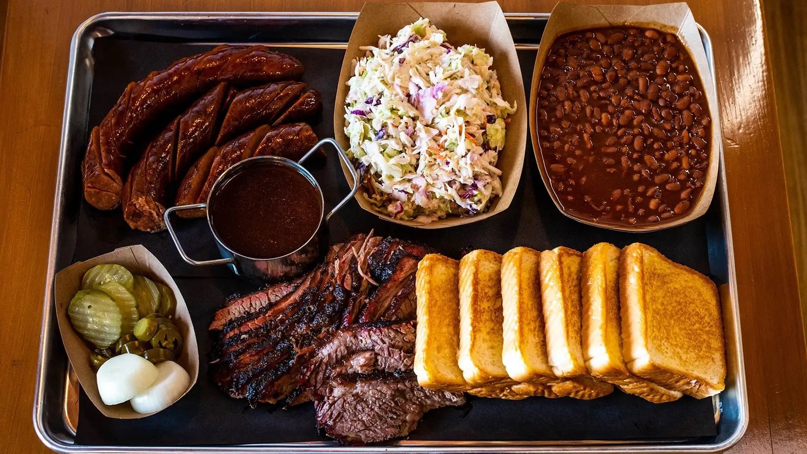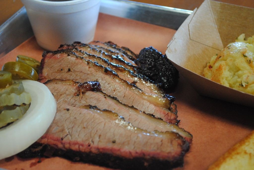 The brisket, sausage, ribs, creamed corn, and green beans are highly recommended. For a unique treat, try the Pulled Pork Frito Pie or the apple cobbler for dessert.