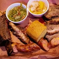 Cooper’s specializes in a variety of smoked meats, including brisket, ribs, sausage, and turkey, along with classic sides like potato salad, coleslaw, and baked beans.