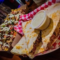 Hot Texas Grills offers a variety of BBQ dishes, including brisket, pulled pork sandwiches, queso, nachos, and burgers. Their menu is designed to satisfy a range of cravings, making it a popular choice at Moontower Saloon.
