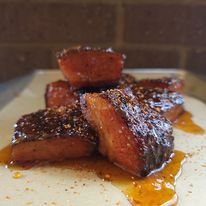 The standout dishes include the Peach Tea Pork Belly Bites, brisket, and Smoked Gouda Mac and Cheese. Many customers also rave about the scalloped potatoes and the surprisingly delicious Zucchini Tomato Salad.
