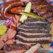 Shady Oak is known for its mouthwatering brisket, smoked sausage, and delicious BBQ ribs. Customers rave about their Black Peppered Sausage and the Trash Can Appetizer, as well as side dishes like the potato salad and the stuffed baked potatoes.